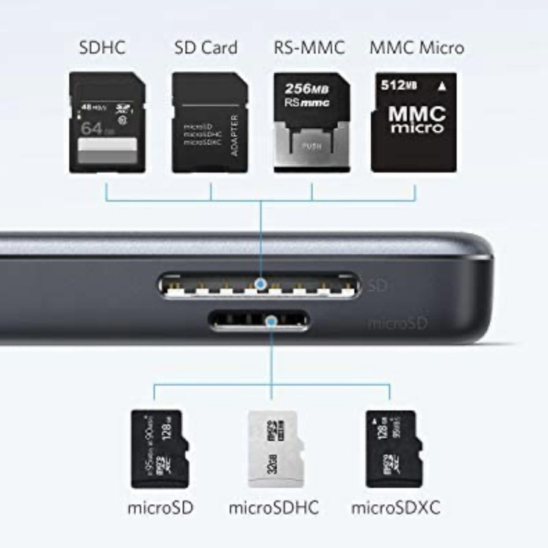 هاب انکر مدل A8334 داری 5 پورت ورودی است. یک پورت HDMI، یک پورت SD Card، دو پورت یو اس بی 3، یک پورت Micro SD Card