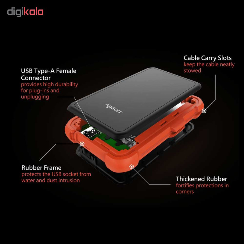 هارد اکسترنال «AC630» محصولی از برند «اپیسر» (Apacer) است. این هارد اکسترنال در فرم فاکتور 2.5اینچی ساخته شده و دارای بدنهای از جنس آلومینیوم است. ابعاد خوب و کوچک محصول باعث شده تا بتوانید بهراحتی این هارد را با خود همراه و هر نوع دادهای را روی آن کپی کنید. در بدنهی AC630 از لایهی سیلیکونی استفاده شده که باعث میشود این هارد اکسترنال در برابر ضربه و سقوط از ارتفاع مقاومت کند. دورتادور هارد، شیاری وجود دارد که برای قرارگرفتن کابل اتصال به کامپیوتر تعبیه شده است. ساختار داخلی هارد بهگونهای است که با استفاده از مکانیزم تعلیق داخلی، مانع از واردآمدن ضربههای شدید به هارددیسک داخلی و اطلاعات آن میشود. دریافت گواهینامهی نظامی MIL-STD-810G 516.6¬ از ارتش ایالات متحده، AC630 را هارد اکسترنالی معرفی میکند که میتواند در برابر سقوط از ارتفاع هم دوام بیاورد. میتوان اطمینان داشت که AC630 سقوط از ارتفاع 1.2متری را هم تحمل میکند و آسیبی به دادههای آن وارد نمیشود. یکی دیگر از گواهینامههایی که AC630 به آن مجهز است، IP55 است. مطابق با این گواهینامه میتوان به ضدآببودن محصول و مقاومت آن در برابر نفوذ گردوخاک پی برد. رابط اتصال هارد AC630 به کامپیوتر، USB 3.1 Gen1 است و قابلیت اتصال به نسخههای پیشین USB را هم دارد. این هارد در 2 ظرفیت 1 و 2 ترابایت تولید شده است.