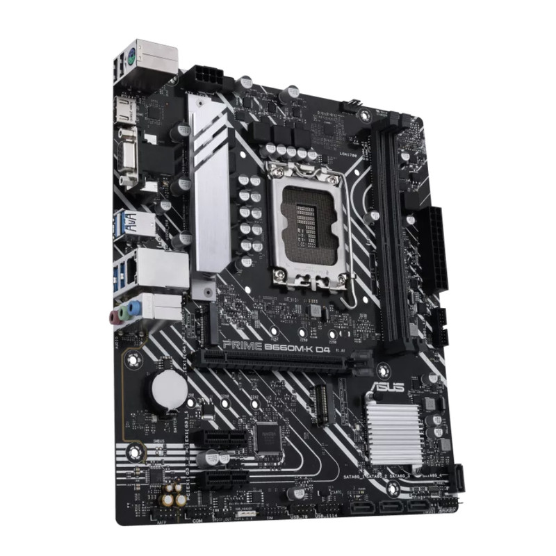 بسیاری از کاربران بهدنبال خرید مادربردهای مقرون بهصرفهای هستند که در کنار بهره بردن از مشخصات فنی مناسب، قیمت معقول و مناسبی هم داشته باشند. ایسوس در این بخش مادربردهای مقرون بهصرفه و اقتصادی را روانه بازار کرده که یکی از این مادربردهای میانرده، ایسوس PRIME B660M-K D4 است. در همان نگاه اولیه طراحی در نظر گرفته شده خبر از آن میدهد که با مادربردی میانرده و مقرون بهصرفه روبهرو هستیم. البته ایسوس سعی داشته تا متریال مناسبی را با توجه به قیمت در نظر گرفته شده در نظر بگیرد. مخصوصا متریالهای مناسب در قسمت چیپست، سبب خواهد شد تا در شرایط کاری پرترافیک، عملکرد مناسب و قابل قبولی را شاهد باشید. دو اسلات حافظه از نوع DDR4 در نظر گرفته شده برای مادربرد PRIME B660M-K D4 هم توانایی پشتیبانی از حداکثر میزان حافظه داخلی 64 گیگابایت را دارد. حضور چیپست B660 شرکت اینتل هم در جایگاه یک پردازنده میانرده و قیمت در نظر گرفته شده برای این مادربرد، توانایی ارائه عملکرد قابل قبولی را دارد. در پنل پشتی هم درگاههای مناسب و بهنسبت متعددی در نظر گرفته شده است که امکان اتصال راحت با دستگاههای دیگر را فراهم کرده است. فرم فکتور mATX هم ابعاد کوچکتری به نسبت فرم فکتور ATX دارد که فضای کمتری را هم اشغال میکند.