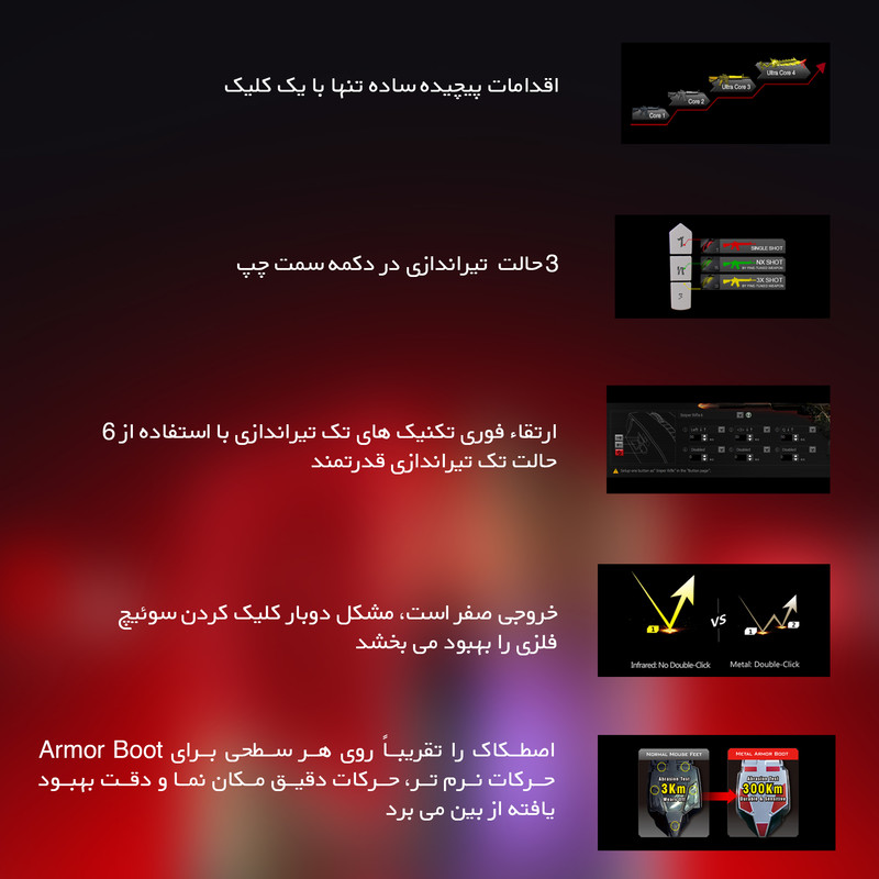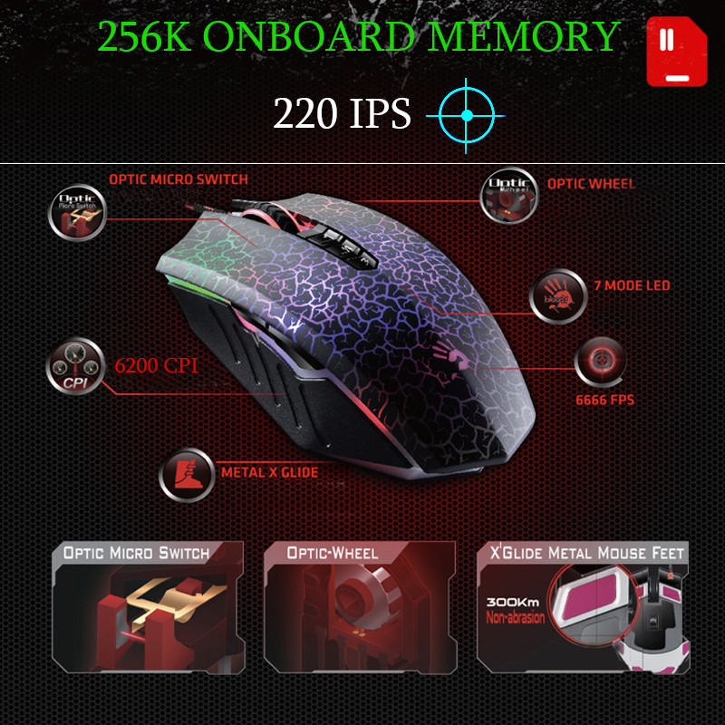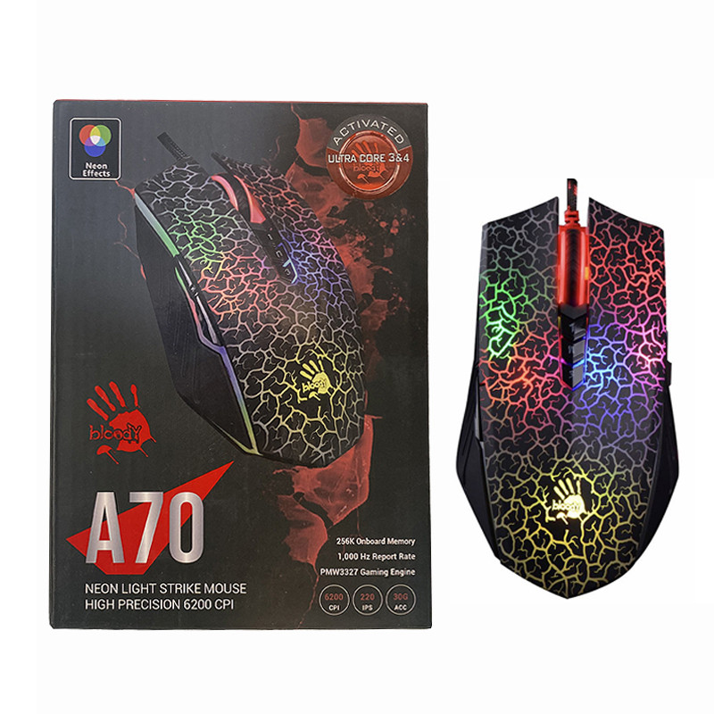 اگر به دنبال یک ماوس گیم برای درگ کردن و CPS گرفتن در بازی ها هستین A70 بلادی یک ماوس تمام عیار است که در بین گیمر های دنیا بیشترین طرفدار را دارد. این ماوس مخصوص درگ کردن و CPS گرفتن در گیم ها طراحی شده است. بلادی A70 را سه برابر سریعتر از A60 و A90 طراحی کرده است. این ماوس یکی از پر فروشترین ها در دنیا است که بلادی در طراحی تعبیر ( هیچ کس نمیتواند از شما پیشی بگیرد ) را برای معرفی به گیمر ها استفاده میکند. این ماوس با 256 کیلوبایت حافظه داخلی و رهگیری 220 IPS و سرعت بسیار سریع در پاسخ گویی پرچم دار بلادی ست.
