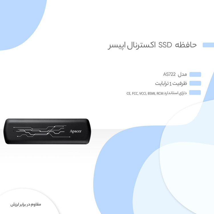 مقاومت در برابر شوک تا ۱۵۰۰ جی به مدت ۰.۵ میلیثانیه