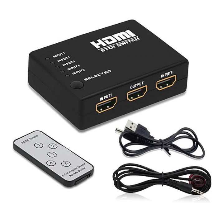 سوییچ 5 پورت HDMI مدل Full HD برای اشتراک گذاری چند سیستم پخش کننده ی تصویر به یک نمایشگر استفاده میشود. این محصول یکی از کاربردیترین اقلامی است که امروزه با پیشرفت تکنولوژی استفاده از آن نیز به نوعی الزام تبدیل گشته است. سوئیچ اچ دی ام آی 5 پورت زمانی مورد استفاده قرار میگیرد که بخواهید از چند دستگاه شبیه هم در موقع لزوم استفاده کنید، درواقع ما قصد داریم یکی از محصولات کاربردی و مورد استفاده در اکثر سازمانها و حتی شبکههای کوچک و یا حتی خانگی را به شما معرفی کنیم.این وسیله اتصال کننده دستگاهای پخش کننده به نمایشگر بصورت جداگانه است. بوسیله دکمه ی تعبیه شده روی دستگاه میتوان به صورت جداگانه پورت HDMI دستگاه را سوئیچ کرد.