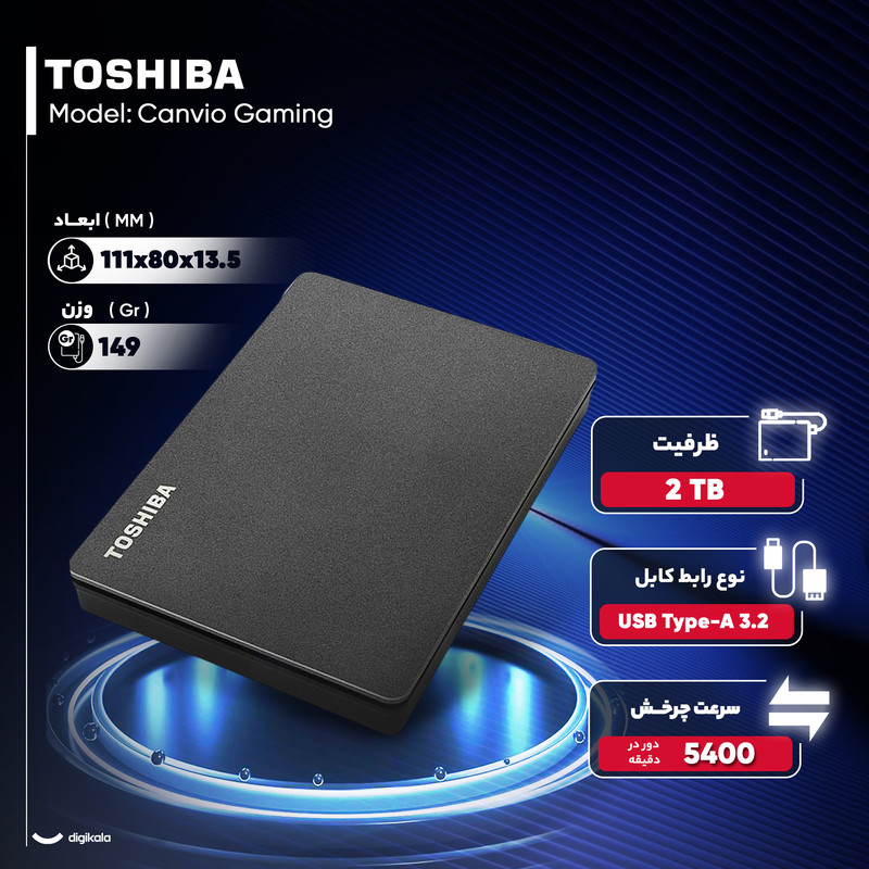 هارد اکسترنال توشیبا مدل Canvio gaming ظرفیت 2 ترابایت توشیبا بر مبنای درایوهای اینترنال سری بلک این کمپانی طراحی و توسعه پیدا کرده و دوام و ماندگاری، قابلیت اطمینان و کارایی هم ترازی را به ارمغان آوردهاند. این سری از محصولات بهصورت کاملاً اختصاصی برای استفاده در حوزه گیمینگ و بازیهای رایانهای روانه بازار شده و پشتیبانی از کنسولهای PS4 و Xbox و همچنین رایانههای شخصی را میسر ساختهاند. تنوع ظرفیت ذخیرهسازی بالا در بهبود انعطافپذیری گیمرها در تشکیل آرشیوی گسترده از عناوین مورد علاقه خود بسیار تأثیرگذار ظاهر شده است.هارد اکسترنال توشیبا مدل Canvio gaming ظرفیت 2 ترابایت کمپانی توشیبا از فرم فاکتور استاندارد 2.5 اینچ برخوردار بوده و بهینهسازیهای ویژهای را برای مباحث و امور گیمینگ از جانب سازندگان خود دریافت کردهاند. سطح رویی آن به گونهای ساخته شده است که در مقابل خش و اثر انگشت مقاوم باشد. هارد اکسترنال جدید توشیبا میتواند بین دماهای 5 تا 55 درجه کار کند. همچنین دمای ذخیرهسازی آن نیز بین منفی 40 درجه سانتیگراد تا مثبت 70 درجه سانتیگراد خواهد بود.