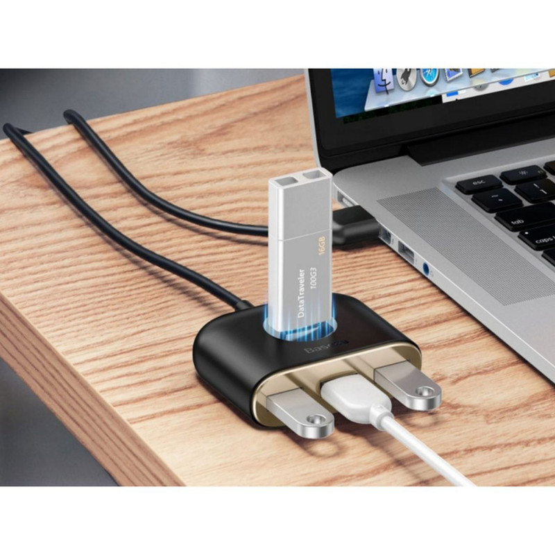 یکی از مشکلاتی که همگان با آن رو به رو می شوند کمبود پورت USB سیستم و لپ تاپ می باشد. کمپانی Baseus با ساخت هاب چهار پورت CAHUB-AY01 این مشکل را به کلی از بین برده است. این محصول ازطریق پورت USB به سیستم شما متصل می شود و بعد از آن قادر خواهید بود از 4 پورت USB آن استفاده بکنید.
