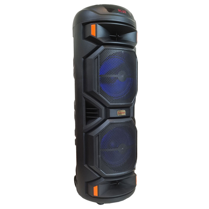 اسپیکر حرفهای PartyBox RS-D41 جدیدترین مدل از اسپیکرهای سری پارتی باکس از کمپانی معتبر تلاش می باشد. شما میتوانید از این سیستم صوتی در دو حالت برق یا باتری استفاده کنید. درایورهای حرفهای این اسپیکر و دو باند 8 اینچ صدای موسیقی را با وضوحبالا و بیس قدرتمندی پخش میکنند و باعث افزایش هیجان مهمانی شما میشوند. کانکشنهای پرکاربرد به شما امکان اتصال آسان به دو صورت بیسیم و باسیم را میدهند تا بتوانید با هر دستگاهی بهراحتی به این سیستم صوتی متصل شوید و موسیقی دلخواه خود را بشنوید. برای اتصال به PartyBox RS-D41 کافی است بلوتوث موبایل یا تبلت خود را روشن کنید، اسپیکر را جستجو کرده و متصل شوید. میتوانید آهنگهای موردعلاقه خود را در یک فلش مموری بریزید و از طریق پورت USB به اسپیکر متصل کرده و پخشکنید. همچنین میتوانید توسط کابل AUX دستگاه خود را از طریق ورودی 3.5 میلیمتری به اسپیکر متصل کنید. حالا فقط دکمه پخش را فشار داده و آماده شنیدن موسیقی با صدای با کیفیت و فوق العاده شوید.در کنار تمام این قابلیت ها شما میتوانید با استفاده از قابلیت TWSدواسپیکر D41 را به طور همزمان متصل کرده و از موزیک مورد علاقه خود به صورت استریو لذت ببرید . همچین میکروفون های بیسیم و دیجیتال همراه با اسپیکر علاوه بر کیفیت بسیار بالا شامل 4 صدای مختلف میباشد که بازی خوانندگی (کارءوکه)را بسیار جذاب و سرگرم کننده میکند.