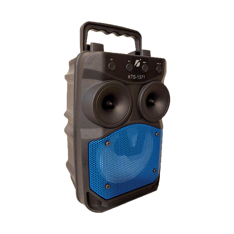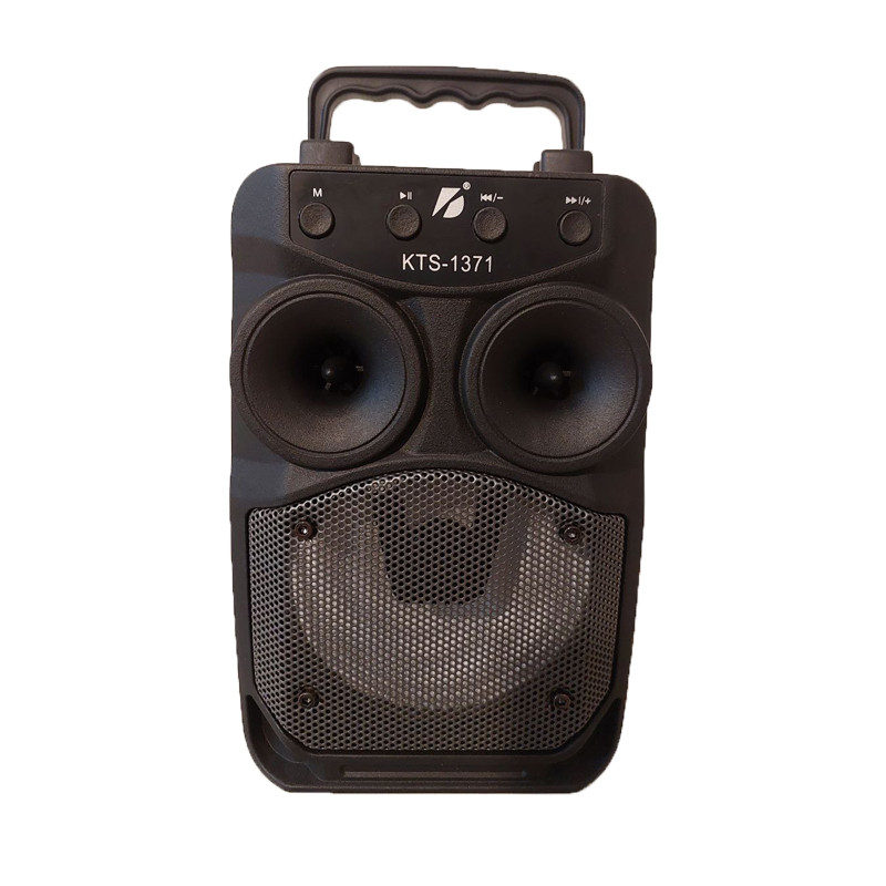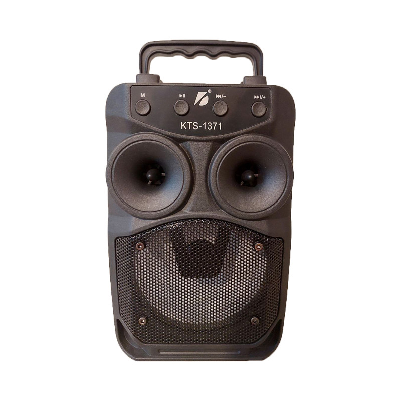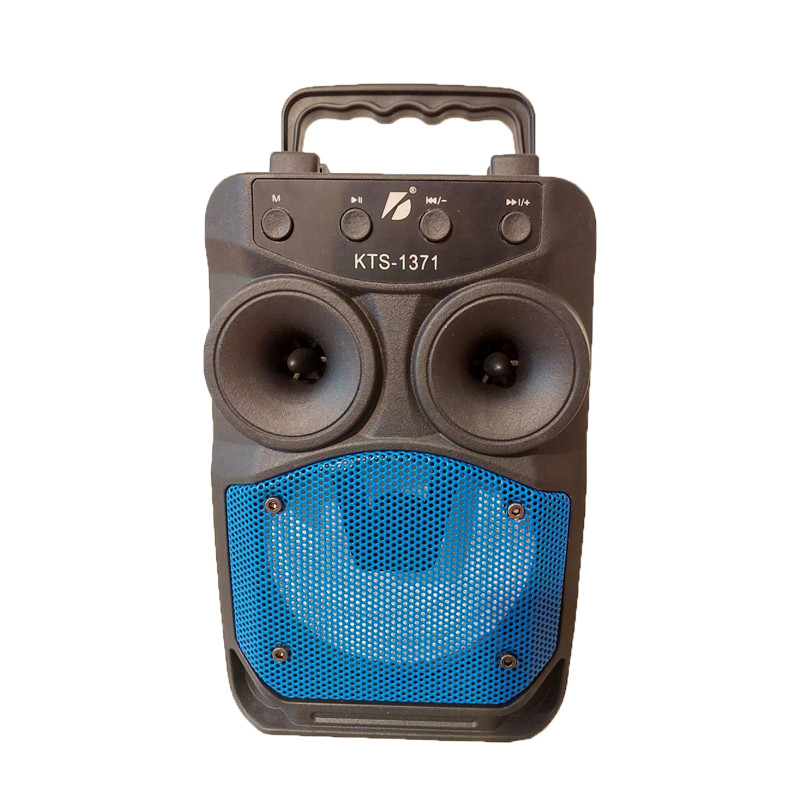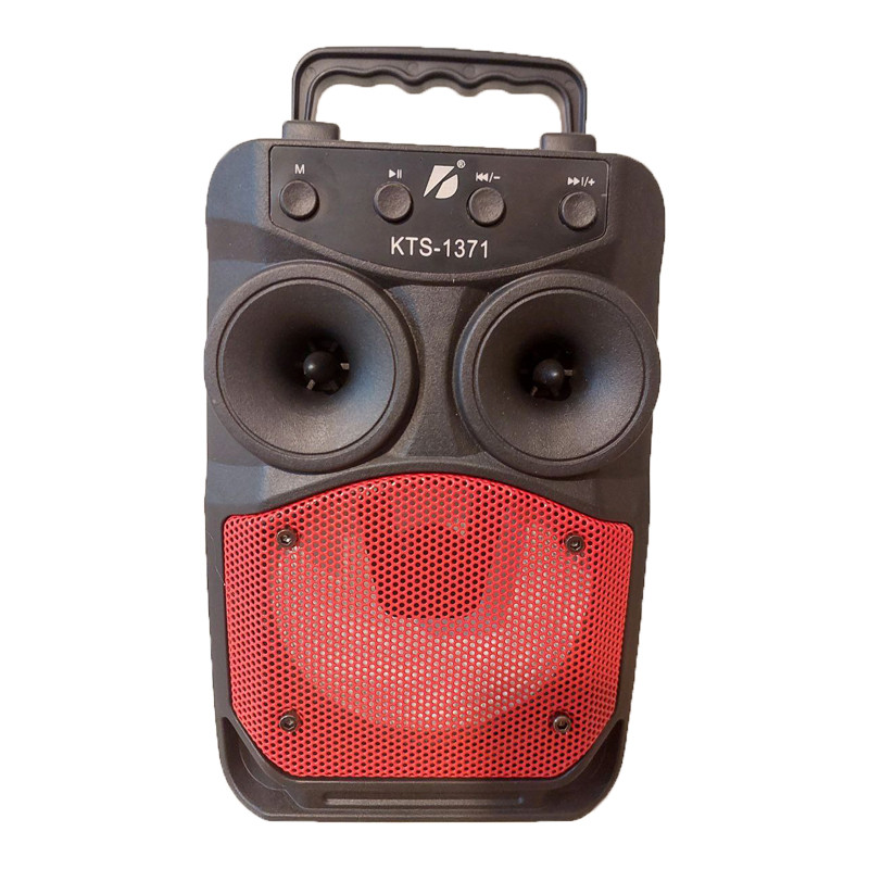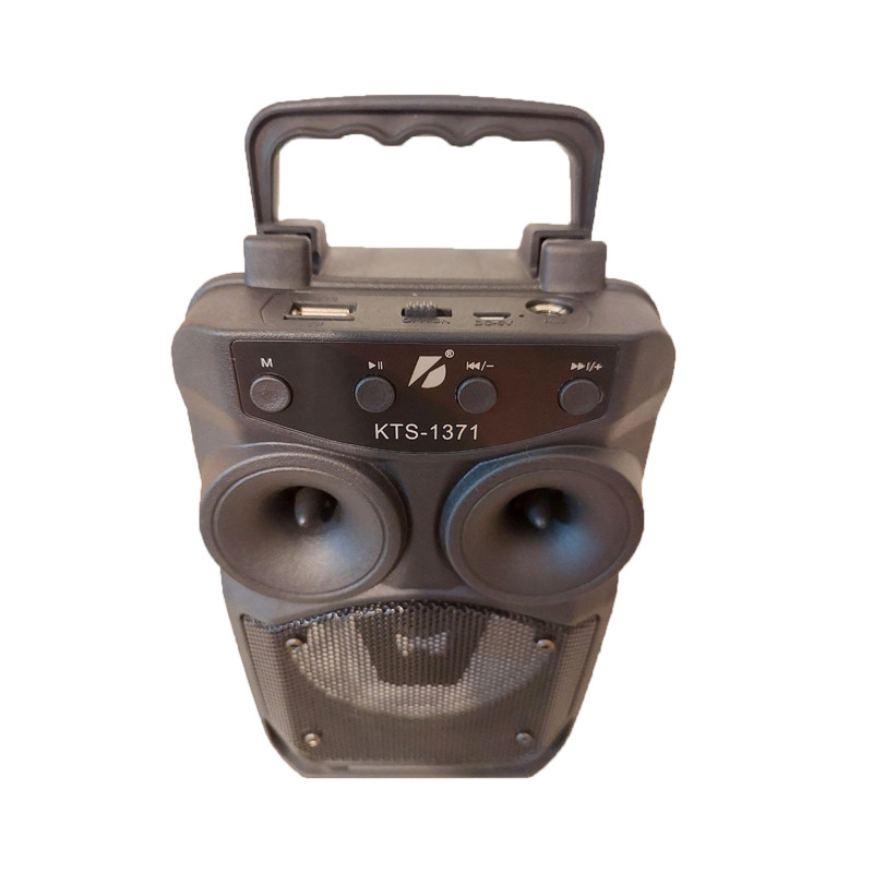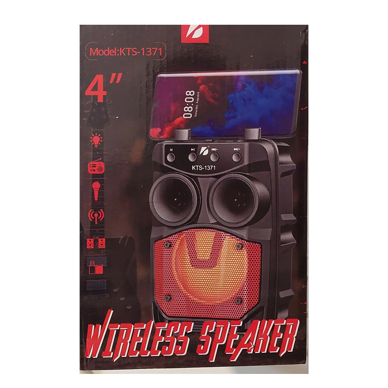 این اسپیکر بلوتوثی مدل kts-1371 تولید شده توسط برند KTS کی تی اس است که با توجه به حجم آن و طراحی ساختی که دارد می تواند به سادگی حمل شود و در هر مکانی استفاده شود. طراحی ساخت این نوع اسپیکر به گونه ای است که فضای زیادی را اشتغال نمی کند و با توجه به دسته ای که بر روی آن تعبیه شده خیلی راحت جا به جا می شود. این اسپیکر برند کی تی اس در چهار رنگ آبی، قرمز، مشکی و خاکستری طراحی و ساخته شده است تا برای هر سلیقه ای قابل استفاده باشد. تولید و ساخت آن با کیفیت بالا انجام شده و طراحی خیلی شیک و کاربر پسندی دارد. هنگام نگاه کردن از رو به رو شبیه به یک شکلک خندان به نظر می رسد که جلوه خاصی به آن داده است. این اسپیکر بلوتوثی کیفیت صدای فوق العاده ای دارد و در فضاهای بزرگ هم قابل استفاده است. در قسمت جلویی آن نور RGB کار شده است که هنگام پخش ترکیب رنگ زیبایی را به نمایش میگذارد که زیبایی خاصی را به آن می بخشد. پخش صدای آن بدون هیچ خط و خشی امکان پذیر است و برای شما تجربه گوش دادن به موسیقی با جلوه های صوتی تصویری را فراهم می کند. به راحتی به بلوتوث دستگاه شما متصل می شود و امکان استفاده از فلش و یا کارت حافظه با درگاه USB هم فراهم میکند. یکی دیگر از قابلیت های عالی این مدل اسپیکر بخش هولدر گوشی موبایل بر روی آن است که خیلی خوب طراحی شده و گوشی شما را در هنگام پخش بر روی خود نگه می دارد.