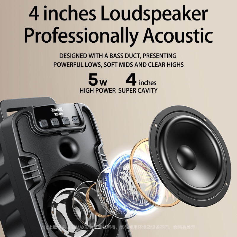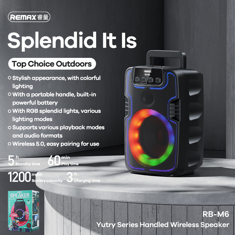 برند ریمکس که سالها است که به عنوان یکی از برترین تولیدکنندگان محصولات دیجیتال در دنیا فعالیت میکند توانسته است به تازگی یکی از کمپانیهای تولید کننده اسپیکرهای بلوتوثی در سایزهای کوچیک و متوسط و بزرگ را به سبد محصولاتش اضافه کند که یکی از بهترین و جدیدترین مدلها مدل RB-M06 را به بازار عرضه کرده است. اسپیکر RB-M06 با 5 وات RMS و سبکهای نورپردازی مناسب، میتواند موسیقیهای شما را در کیفیتی عالی، ارائه نماید. میتوانید نور را با ضربات موسیقی هماهنگ کنید تا فضایی زیبا همراه با صوتی دلنشین داشته باشید. این محصول زیبا از برند ریمکس دارای ساختاری مستحکم است که باعث میشود دوام و مقاومت بسیار خوبی در شرایط مختلف داشته باشد. این محصول دارای قابلیت اتصال با سیم و بی سیم است که اتصال بی سیم به وسیله بلوتوث و اتصال سیمی نیز به وسیله رابط 3.5 میلی متری AUX خواهد بود. . به راحتی میتوانید برای ایجاد سرگرمیهای خود و افزایش هیجان در میهمانیهای خود، از این اتصالات استفاده کرده و در موسیقیهای بی نظیر و شفاف آن، غوطه ور شوید. این اسپیکر 1200 میلی امپر ظرفیت باطری دارد.