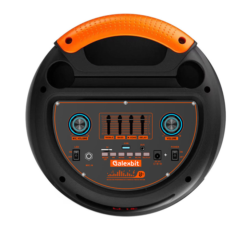 اسپیکر حرفهای PartyBox RS-D40 جدیدترین مدل از اسپیکرهای سری پارتی باکس از کمپانی معتبر تلاش می باشد. شما میتوانید از این سیستم صوتی در دو حالت برق یا باتری استفاده کنید. درایورهای حرفهای این اسپیکر و دو باند 8 اینچ صدای موسیقی را با وضوحبالا و بیس قدرتمندی پخش میکنند و باعث افزایش هیجان مهمانی شما میشوند. کانکشنهای پرکاربرد به شما امکان اتصال آسان به دو صورت بیسیم و باسیم را میدهند تا بتوانید با هر دستگاهی بهراحتی به این سیستم صوتی متصل شوید و موسیقی دلخواه خود را بشنوید. برای اتصال به PartyBox RS-D40 کافی است بلوتوث موبایل یا تبلت خود را روشن کنید، اسپیکر را جستجو کرده و متصل شوید. میتوانید آهنگهای موردعلاقه خود را در یک فلش مموری بریزید و از طریق پورت USB به اسپیکر متصل کرده و پخشکنید. همچنین میتوانید توسط کابل AUX دستگاه خود را از طریق ورودی 3.5 میلیمتری به اسپیکر متصل کنید. حالا فقط دکمه پخش را فشار داده و آماده شنیدن موسیقی با صدای با کیفیت و فوق العاده شوید.در کنار تمام این قابلیت ها شما میتوانید با استفاده از قابلیت TWSدواسپیکر D40 را به طور همزمان متصل کرده و از موزیک مورد علاقه خود به صورت استریو لذت ببرید . همچین میکروفون های بیسیم و دیجیتال همراه با اسپیکر علاوه بر کیفیت بسیار بالا شامل 4 صدای مختلف میباشد که بازی خوانندگی (کارءوکه)را بسیار جذاب و سرگرم کننده میکند