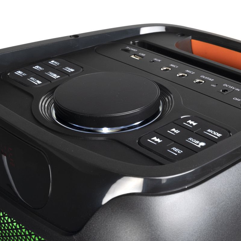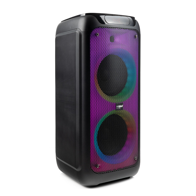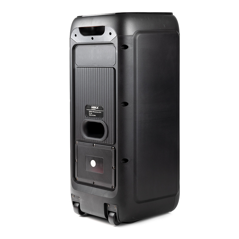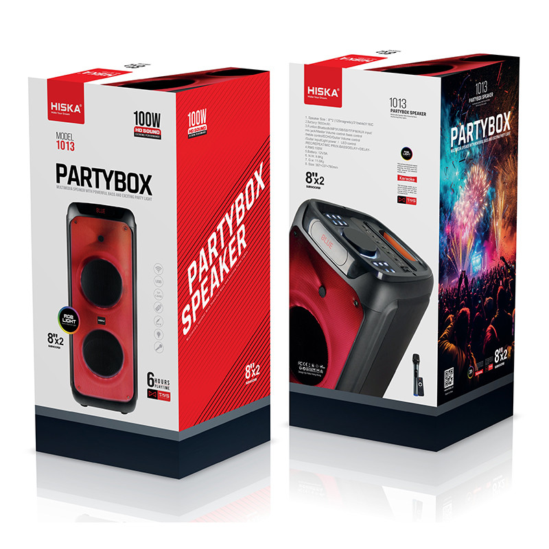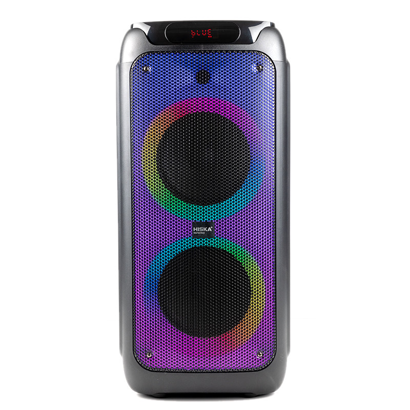 دستهای از اسپیکرها بین مدلهای دسکتاپ و قابل حمل قرار میگیرند، یعنی این محصولات وزن نسبتا زیادی دارند ولی همچنان قابل حمل هستند و میتوانید آنها را برای مهمانیهای خارج از خانه و به دنبال خود حمل کند و همچنین داخل خانه به عنوان اسپیکر ثابت استفاده کنید. اسپیکر هیسکا PARTY BOX 1013 از همین دسته است که می تواند نیاز شما را برطرف کند و کاملا مناسب مهمانی هایتان باشد. طراحی این محصول استوانهای و ساده است و هنگام پخش موسیقی بیشتر از همه رقصنور این مدل جلب توجه میکند به خصوص اگر نور محیط کم باشد این اسپیکر محیط را جذابتر میکند. دکمههای مختلف اسپیکر هیسکا PARTY BOX 1013 به روی بخش بالایی آن قرار گرفتهاند و شما میتوانید اسپیکر را خاموش/روشن کرده و یا صدا را کم/زیاد کنید و به موزیک قبلی یا بعدی بروید. در همین بخش دکمهای برای روشن و خاموش کردن چراغها و در واقع رقصنور وجود دارد و همچنین دکمه REC برای ضبط کردن صدا به کمکتان میآید. از طریق دکمه Mode امکان خواهید داشت تا حالت پخش موسیقی را نیز قرار دهید. در همین بخش درگاههای میکروفون، AUX، کارت حافظه جانبی و USB-A دیده میشود و این یعنی میتوانید با سیم هم به این دستگاه متصل شوید. برای این اسپیکر بلوتوث نسل 5 در نظر گرفته شده و این یعنی اتصال پایدار و قوی بین اسپیکر و پلیر برقرار میشود، به خصوص اگر گوشی یا لپ تاپ یا محصول دوم نیز از همین نسخه بلوتوث بهره ببرد. شما میتوانید از طریق اتصال فلش مموری نیز به موسیقی گوش دهید یا حتی با AUX متصل شوید تا در مصرف باتری نیز صرفهجویی شود. ورودی میکروفون موجود به روی این اسپیکر به شما امکان میدهد تا با متصل کردن میکروفون صدای خود را با ولوم بسیار بلندی به گوش دیگران برسانید و مثلا در جهت خواندن از این اسپیکر بهره ببرید. این دستگاه از قابلیت اتصال همزمان به دو دستگاه نیز بهرهمند است که نکته بسیار مثبتی به حساب میآید. این مدل توان خروجی برابر با 100 وات دارد. از نظر بلندی صدا این مدل میتواند به خوبی مهمانی شما را گرم کند و ولوم کافی برای پخش موسیقی در یک محیط متوسط را در اختیار قرار دهد. کیفیت صدا و تفکیک آن هم رضایت بخش است و بیس نیز در سطح مناسبی قرار میگیرد. همچنین با باتری 9000 میلی آمپرساعتی که دارد امکان پخش موسیقی تا 6 ساعت را با ولوم 80 درصد به شما می دهد.