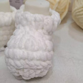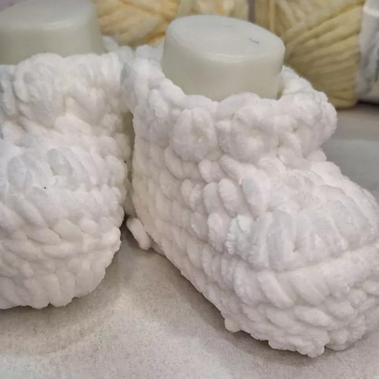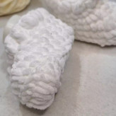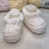 پاپوش نوزادی با نخ مخمل بسیار نرم و لطیف سایز یک زیرش ماه تا دوسال سایز بندی دارد