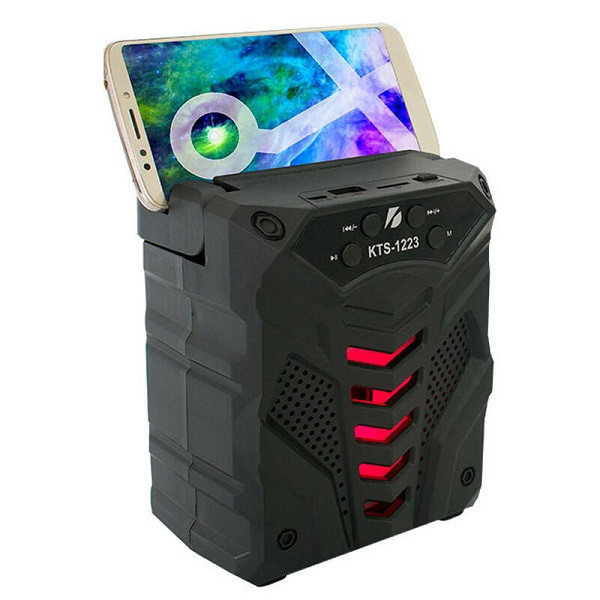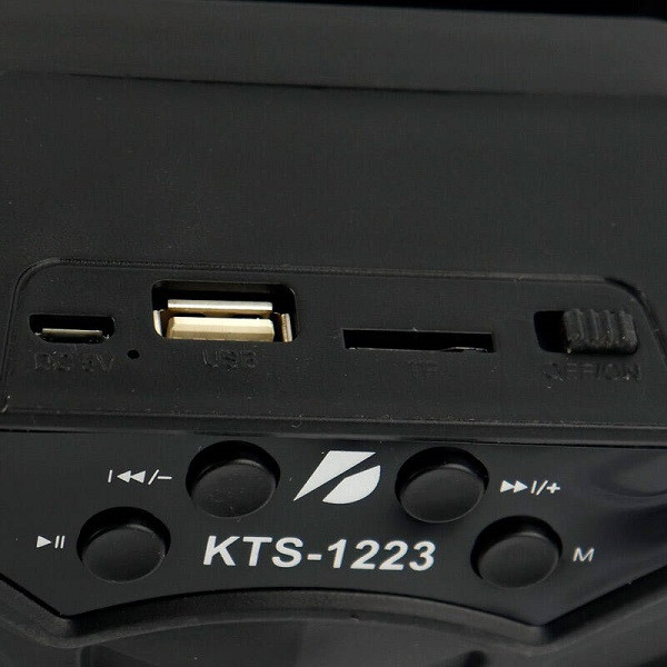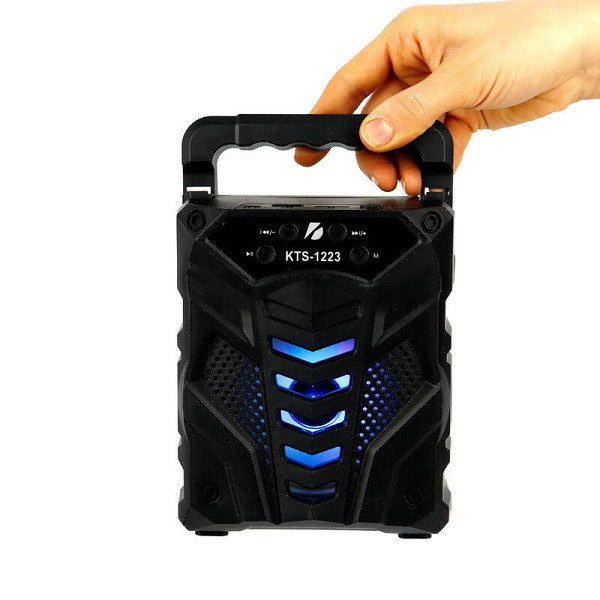 اسپيكر چمدانی kts مدل 1223 محصولی از برند کی تی اس است. این اسپیکر دارای ابعاد نسبتا متوسطی است و با توجه به وزن مناسب ، شما را قادر می سازد که به راحتی از آن در تفریحات ، مراسمات و مهمانی ها استفاده کرده و لذت ببرید . این اسپیکر دارای دو عدد باند چهار اینچی با توان پنج وات بوده که با توجه به حجم صدای قابل قبول و ورودی میکروفون شما را قادر می سازد تا به عنوان بلند گو نیز در تفریحات و موارد مورد نظر خود استفاده کنید.