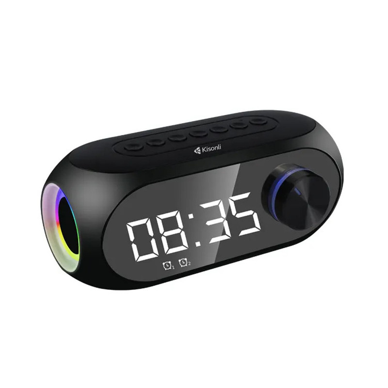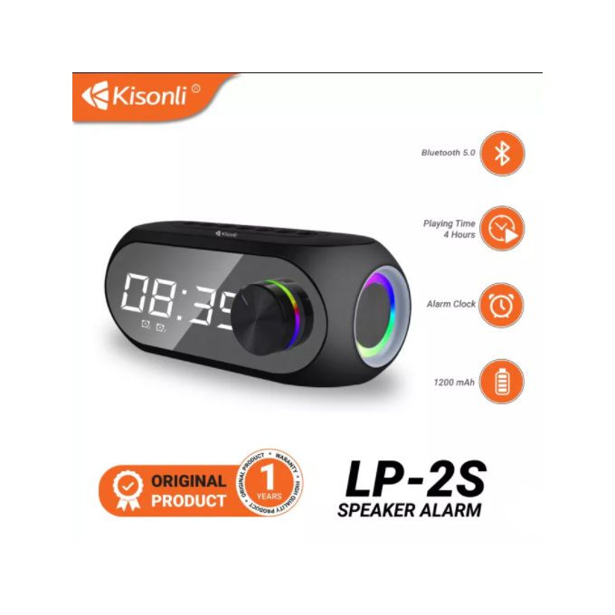 کیسونلی LP-2S یک اسپیکر بلوتوثی است که علاوه بر پخش موسیقی، یک نمایشگر ساعت دیجیتالی هم دارد که میتوانید از آن به عنوان یک ساعت رومیزی زیبا و جالب نیز استفاده کنید. این اسپیکر امکان تعیین 2 عدد آلارم برای شما فراهم میکند. باتری این اسپیکر 1200 میلی آمپر ساعت است و برای شارژ کامل آن حدود 2 تا 3 ساعت زمان لازم است. با یک بار شارژ، این اسپیکر میتواند تا 3 تا 4 ساعت موسیقی پخش کند و زمان آماده بکار آن حدود 6 تا 7 روز است. این اسپیکر از نسخه 5 بلوتوث استفاده میکند و برد آن 10 متر است. اسپیکر LP-2S یک بلندگوی 5 واتی دارد که صدای خوبی را به شما ارائه میدهد. این اسپیکر علاوه بر بلوتوث، قابلیت پخش از طریق کارت حافظه SD و کابل AUX را نیز دارد. این اسپیکر از فرمتهای صوتی MP3 و WMA پشتیبانی میکند. اسپیکر کیسونلی LP-2S از فناوری TWS نیز پشتیبانی میکند.